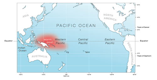 El Niño and La Niña events are a natural part of the global climate system. They occur when the Pacific Ocean and the atmosphere above it change from their neutral (‘normal’) state for several seasons. El Niño events are associated with a warming of the central and eastern tropical Pacific, while La Niña events are the reverse, with a sustained cooling of these same areas.